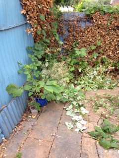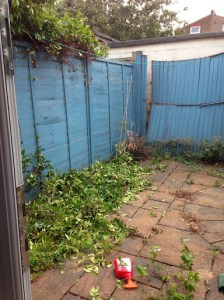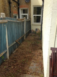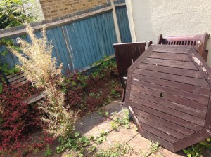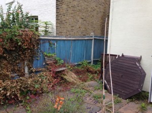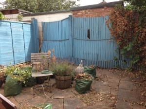 Anyway, here it is, our tiny patio garden, cleared of the worst of the weeds and ready for the installation of new fences!