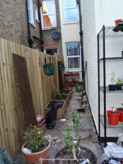 So then, the question has to be how to use it. Because our garden is south-facing, our side return down get some sun but because it’s so narrow, we’re talking a maximum of two hours. So growing fruits is likely to be tricky. Instead I think I’m going to try beans and peas here instead. They’ll just look messy if I try to line them along the main beds in the square part of the garden, so I’ll line them up against the wall. In addition to this, I’ve decided to grow some cat grass for the cats to eat and play on. This would be an ideal place to do so.