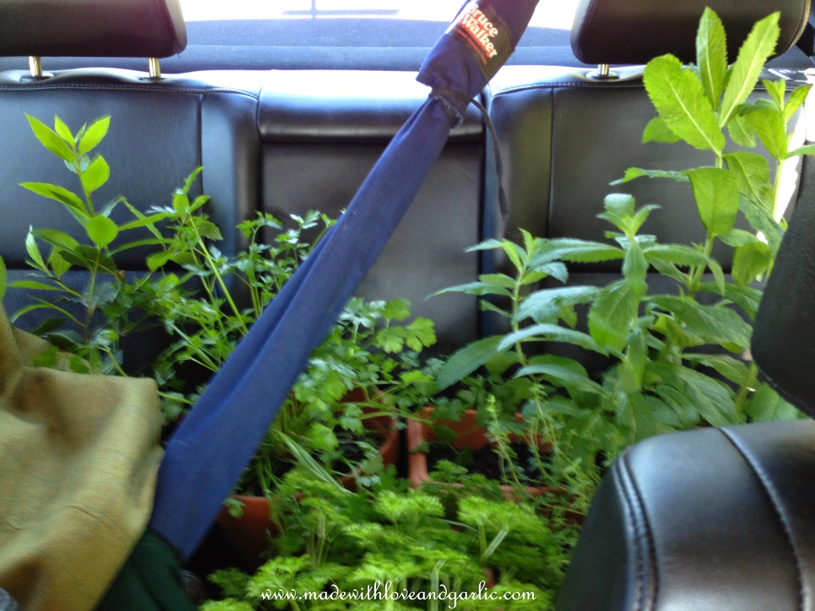 | Herbs in the car – it was a very pleasantly scented journey! |