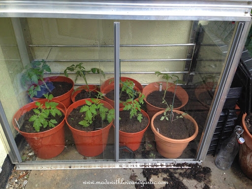 I’ve reserved the mini greenhouse for tomatoes. This isn’t just because they’re probably my favourite vegetable, but also to protect them from blight which runs rife in the UK if you grow tomatoes outside. However, I still had too many.