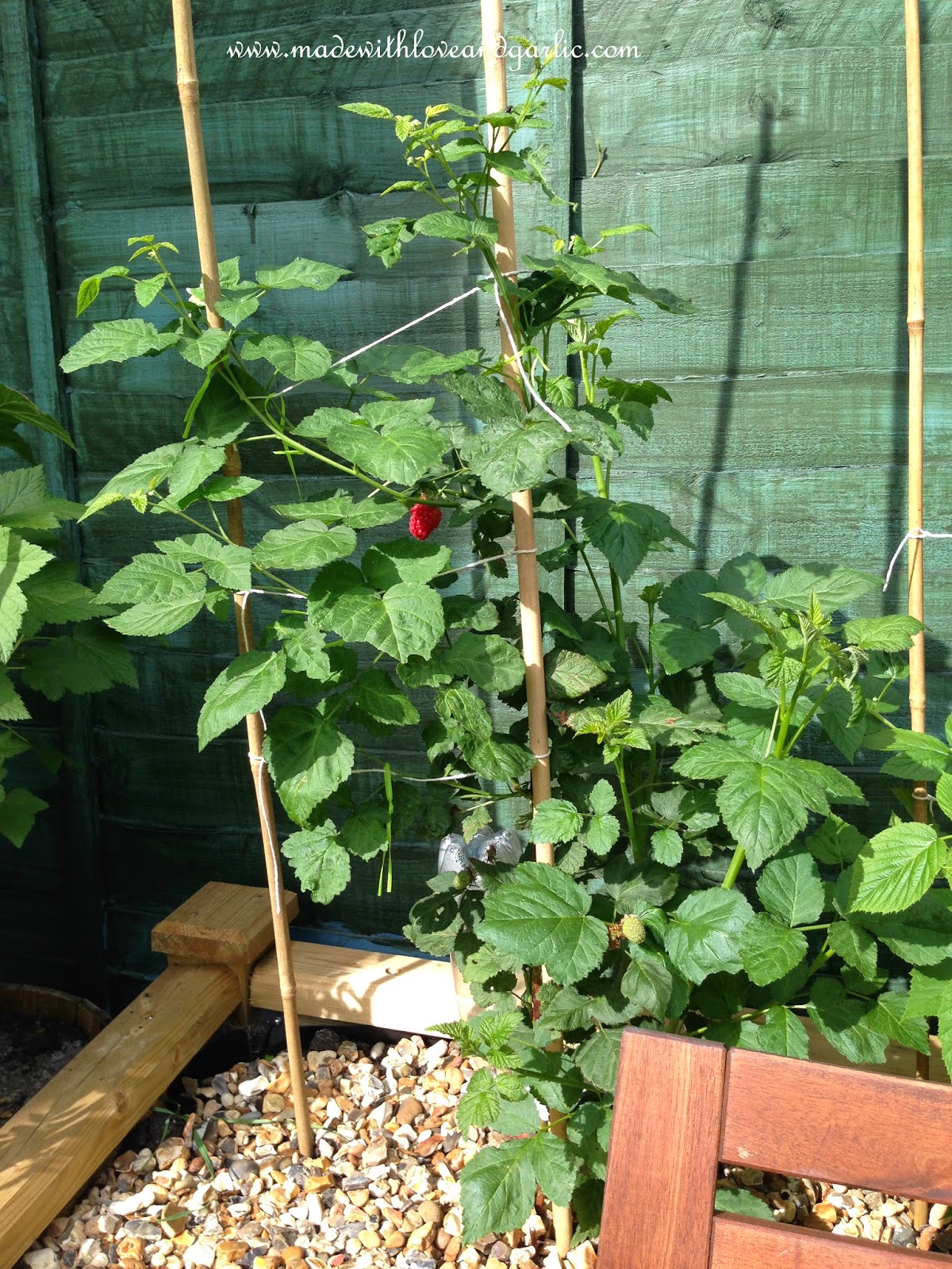 The Buckingham Tayberry is a lovely and vigorous plant. I erred on the side of caution when it came to planting up my soft fruit raised beds. I wanted to plant fruit that I love to eat, that would save us money and that I know tastes better fresh. So I went for a whole row of raspberries (my favourite fruit). But given that the Tayberry is a hybrid mix between black raspberries and loganberries, I wanted to try one of those. I now wish I’d gone for a full row of Tayberries rather than just the one lone cane. So far it’s shot up in height and I can well imagine it’ll reach its 2mx2m eventual size. Apparently next year I can hope for a yield of about 20lbs (a jaw-dropping 9kg) of fruit from it but it’s started off well this year already.