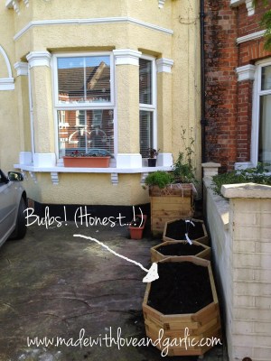 I have decided to be charitable. Even though the caterpillars decimated my gooseberries and kiwi last year, I am continuing with my attempts to lure butterflies and bees to the garden. The small trellis pots that I had last year were broken by the gales that we experienced this winter and so I’ve replaced them with long, low raised beds that are much sturdier. They’ve been planted with various bulbs (daffodils and tulips) and wildflower seeds but at the moment they look really rather depressing. Fingers crossed that they sprout soon. The neighbour’s cat has been spotted in the vicinity eyeing my large beds of earth with a gleam in his eye that I don’t like at all…