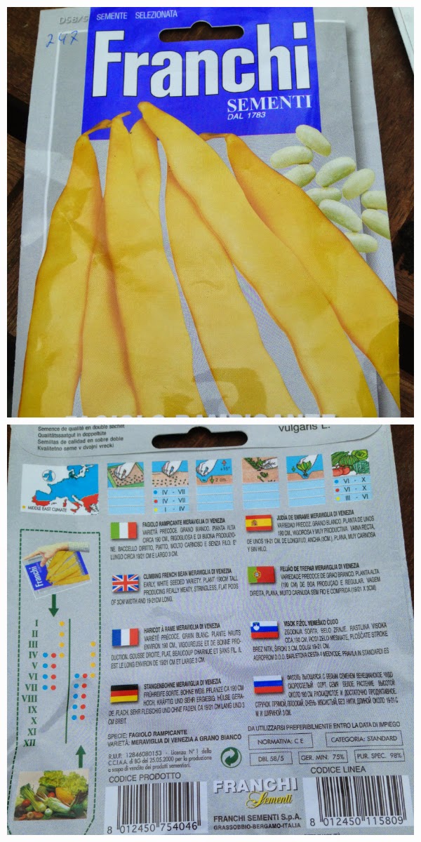 Being a foreigner myself (albeit a bit of a fake one), I sympathise with anybody that comes to the UK and struggles to make themselves understood. Take, for example, my lovely yellow climbing French beans. Or haricots, if you will. They came with a pleasingly incomprehensible instruction illustration.You will laugh, oh experienced gardener readers, when I tell you that I honestly spent about ten minutes wondering what on earth the different coloured dots meant. Eventually I worked out that they must represent different geographical regions and thus be used to indicate sowing / harvesting times in accordance with local weather, but it took me a while to get there. A pleasing diversion from an otherwise low key sowing session. All seeds should come with puzzles!
