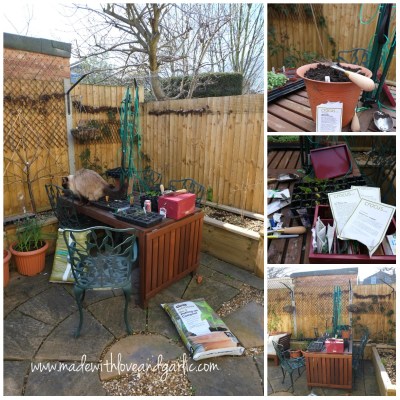 On Easter Monday the lovely Mr Garlic helped me to do a whole morning of gardening. Because I’m stuck on the knee scooter with a broken foot (and my stupid scooter doesn’t fit into the side return), he was wonderful and shuttled back and forth with bags of soil and bean shoots and all sorts of other things whilst I sat and planted more seeds. I planted dill, sweet basil, borlotti beans, various squashes, leeks, broccoli and pumpkins and a couple more of the gourmet red peppers that failed last time. It’s always messy because I’m so short of space, but I love sitting at the garden table and sowing seeds, knowing that each one will lead to delicious yields in a matter of months.
