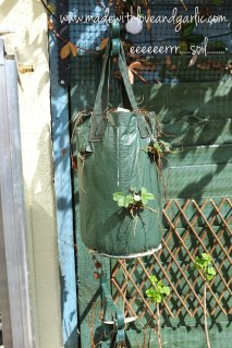 Amazingly, some of the pineberries that I planted in my hanging bag are coming back to life. Better still, they’re actually starting to fruit! It’s important to cover the plants with straw or glass over the winter to protect them, as they’re rather fragile and delicate. I failed to do so, being occupied with the GarlicBaby, but they’ve somehow still pulled through! Incredible plants, I’m very impressed (and eager for them to mature!). Spurred on by this, I checked out the rest of the garden and was amazed to see that both the “Jenny” kiwi plant that got completely gobbled up by caterpillars and the rhubarb I completely forgot that I had planted have both come back to life too. God I love spring…