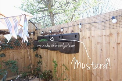 I love mustard. And one of the things that I can’t wait to make this year (as well as ketchup) is my very own mustard. There are just so many potential variations! Lemon juice or vinegar? Whole grain or smooth? But before all of that comes the mustard seed, my fastest growing crop to date. This weekend I moved it from seedling pots to one of my vertical garden hanging baskets. Now all we do is wait!