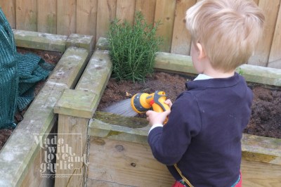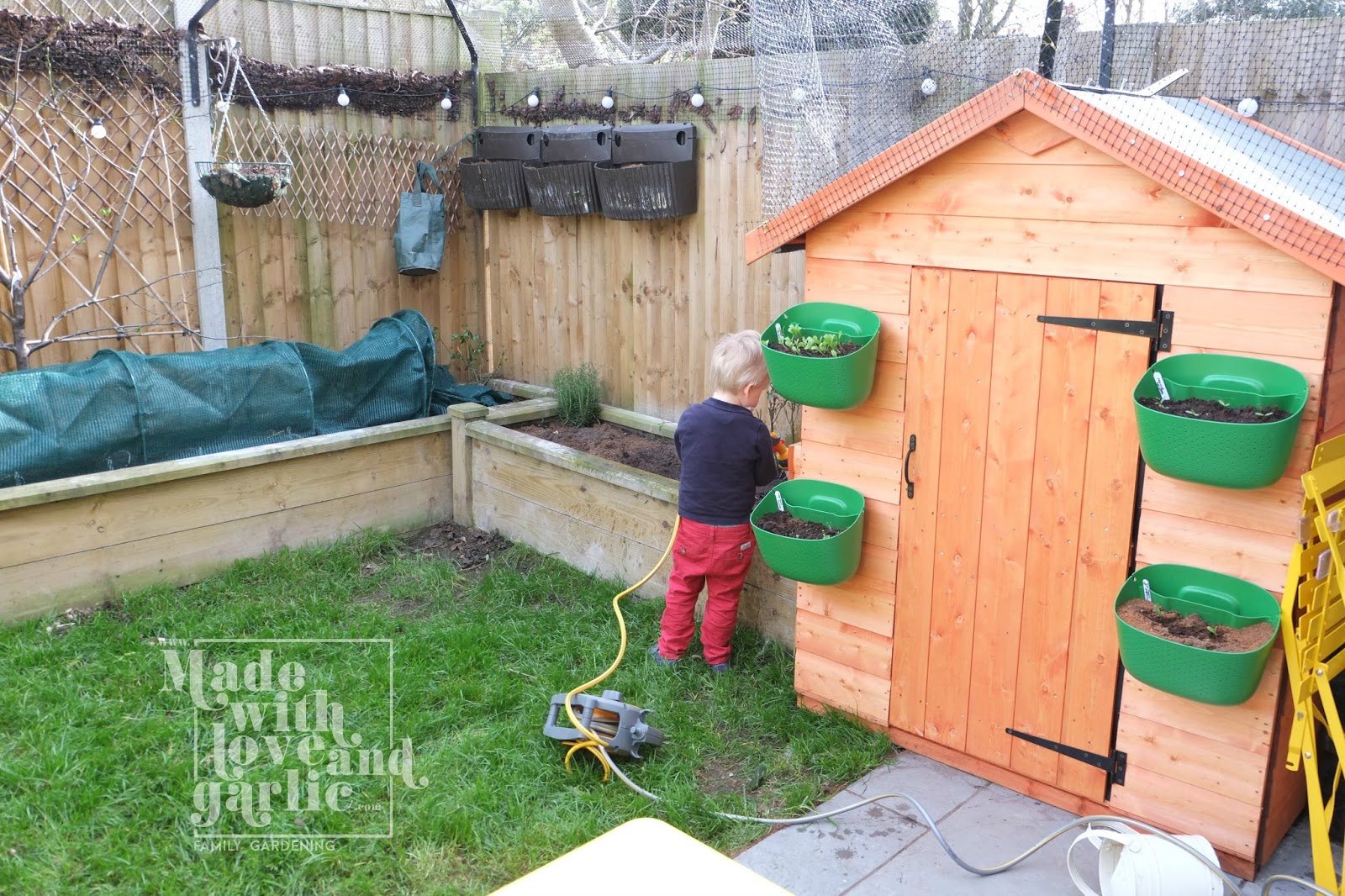 Of all of the gardening tasks that we have to do, digging, sowing, weeding, moving things around, one chore stands out as a complete and utter treat for GarlicBoy. The promise of being allowed to water the garden (with the hose of course) is something that he’ll do anything for. And he’s really thorough! A bit too thorough sometimes, I’m going to have to dye some of the grass a different colour to make it clear he shouldn’t stand quite so close to the soil. But I’m so thrilled that he finds it fun. Then when we do our daily rounds of the garden to see what’s been growing, he feels like he’s been involved in all of it. Gardening with children is fantastic, as with the seed syringe, they see things that we consider mundane as absolutely fascinating.