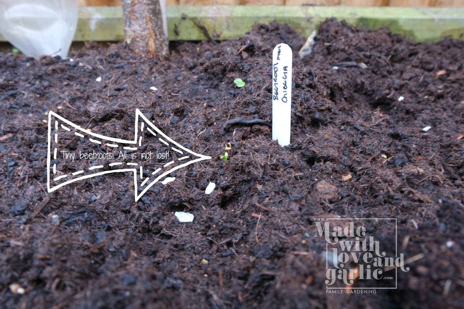 A while ago, toddler GarlicBoy and I sowed some carrot and beetroot seeds in one of our shadier raised beds. I have to admit, I have been seriously worried about them. I had to cover the seeds with a cloche tunnel because the cats kept lying on the raised bed but I think that stopped the seeds from germinating. Taking the cloche off (and blasting the poor cats with the hose to ensure they know not to use that bed) appears to have kick started the seeds again and today I even had to thin them out! The seed syringe appears to have done it’s job remarkably well. So although we might need to find a few ringers to give to the Easter bunny because ours might be a bit slow, it looks like we’re actually going to have our very own carrot and beetroot harvest this year!