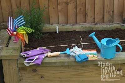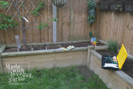 In the past I’ve focused on soft fruits (raspberries uber alles!) but I’m changing tack somewhat so that my toddler GarlicBoy will get to experience harvesting and eating as many home-grown edibles as possible. So I’m learning as I go. I’m trying a slightly altered version of Square Foot Gardening for my carrots and beetroots (no peat in my beds!) and am so used to having bushy, leafy things covering my beds that the teeny tiny seedlings currently scattered about the place look pretty sad and lonely. I’m persevering, however, and had my first great thinning of the seedlings not long ago. I rather naively got my two year old involved and he thought this was a great game and proceeded to pluck his patch almost bare before I could intervene so now I thin alone. The growth, however puny, of the seedlings made me think that I should probably sow a second lot of seeds to ensure that the harvest season isn’t too bunched together. (Hah! Bunched! Get it?). So GarlicBoy and I set out to rake the remaining empty bed smooth ready for the rest of the seeds.