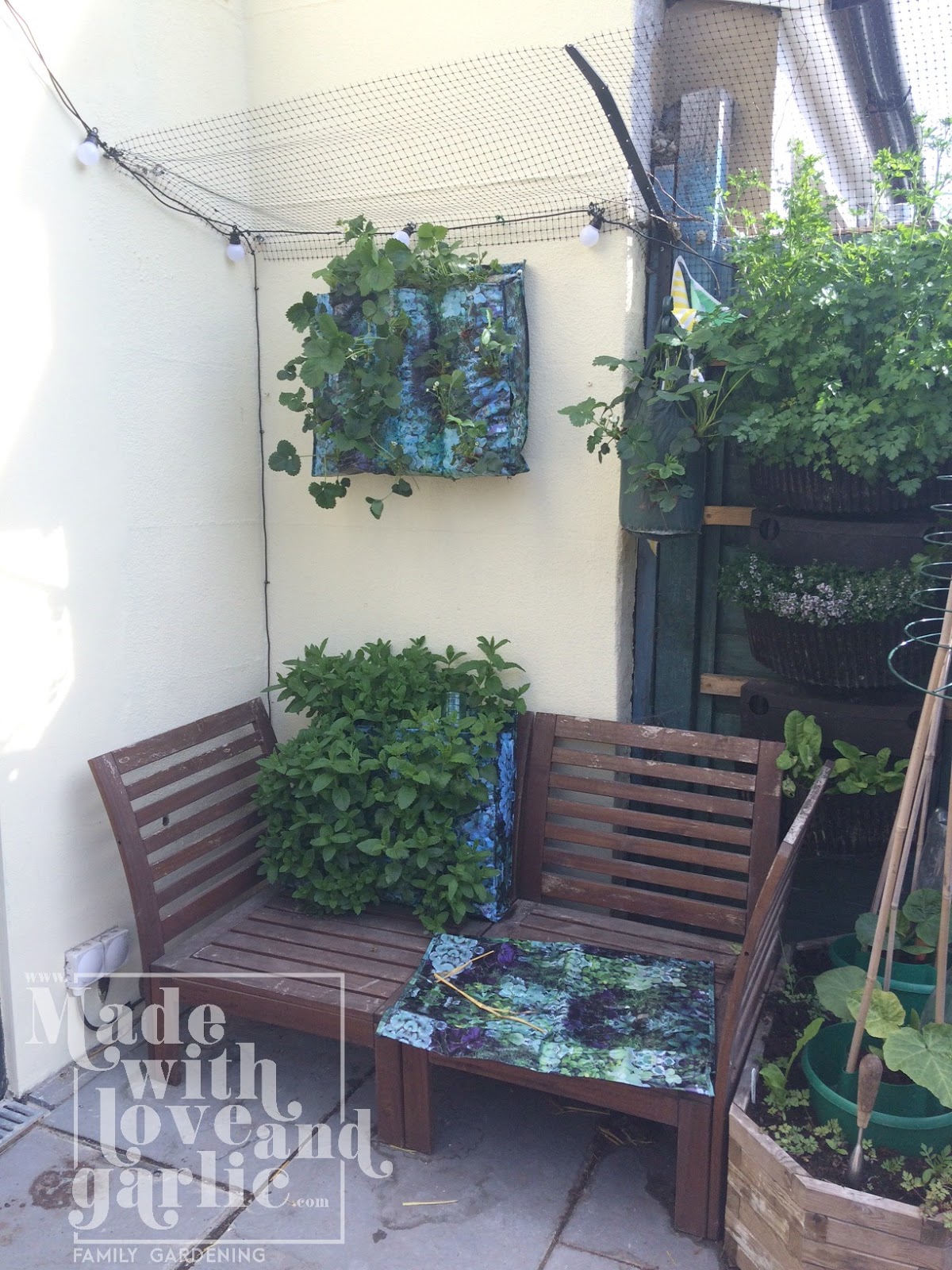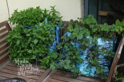 Some time ago I planted up some vertical garden planting bags with mint and strawberries with the intention of fastening the bags to the only empty wall space in the garden. However it turns out that the bags, once planted, are far too heavy to hang on the wall properly, and the bags rip when put up.