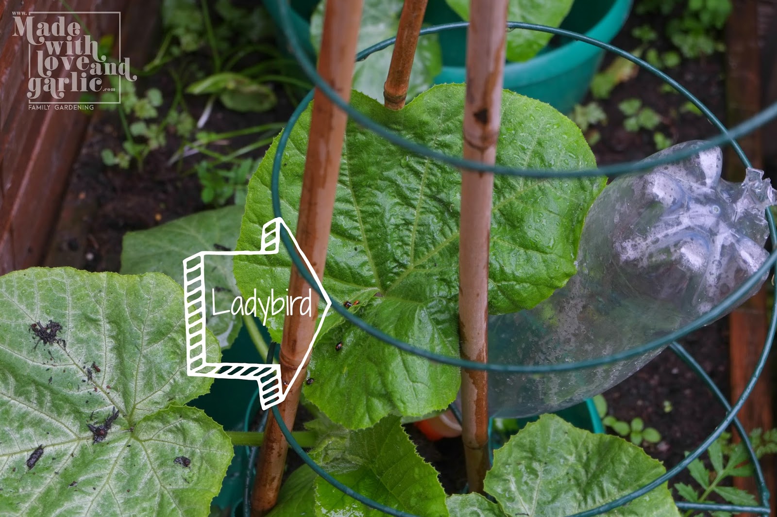 6. [BOTH] Help your child to release the ladybird onto the plant and watch it scurry about. You can then look for ladybirds for the next few days (99 of ours appear to have left us, the ingrates, but we have one solitary remainder!) and talk about what they’re doing and how they’re providing pest control.