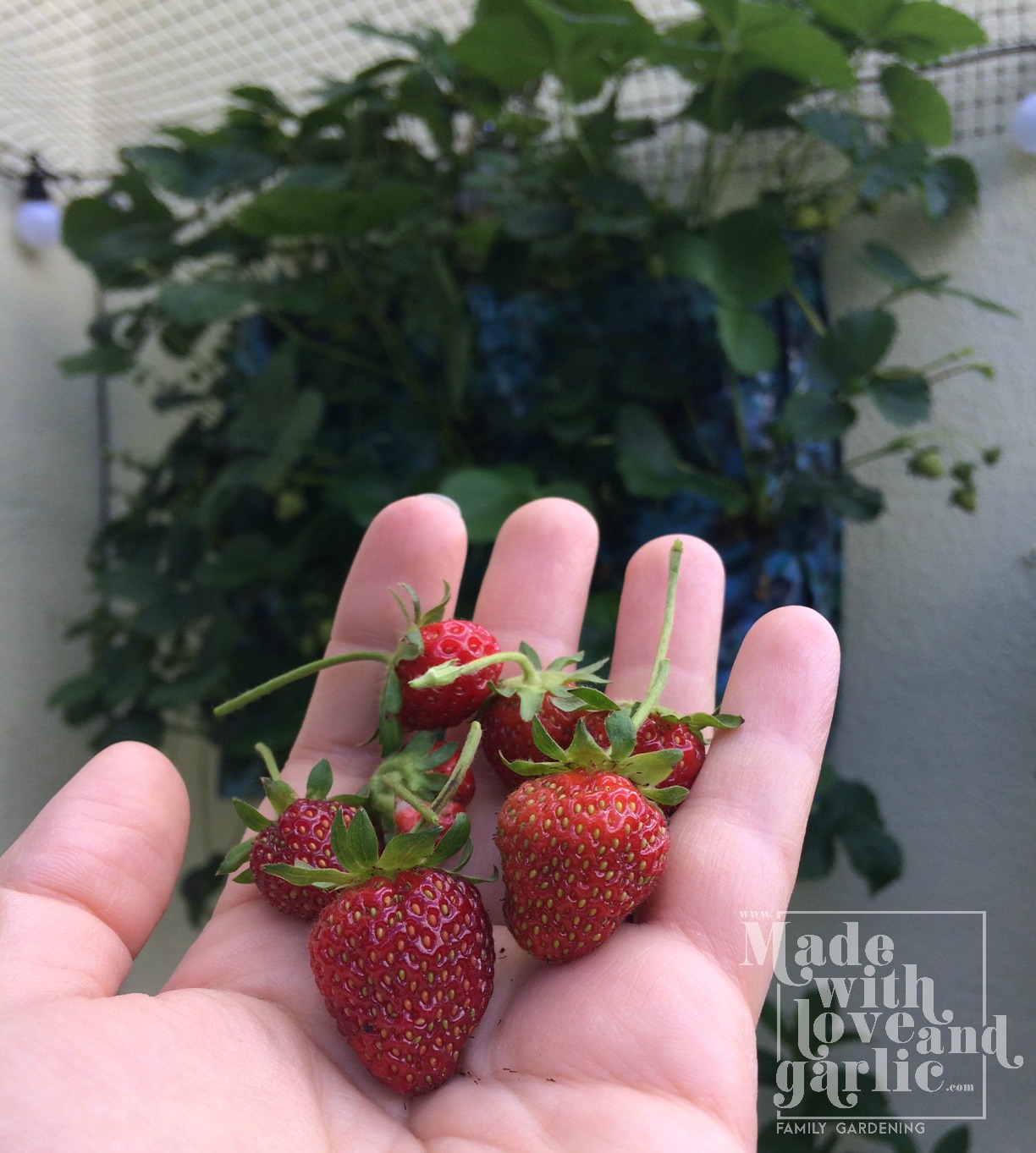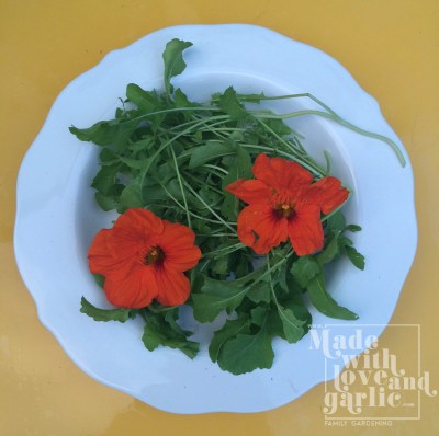 I’ve had quite a fruitful few weeks from the garden (if you’ll pardon the pun). Life has been quite busy but I find that I’m starting to weave gardening into my everyday life. I do a tiny bit of weeding every morning whilst I’m cooking breakfast, and then in the evenings I do any tying in etc before I water the garden once GarlicBoy has gone to bed. And then a couple of times a week whilst he has his lunchtime nap I do the slightly heavier tasks, cutting the grass and planting things out etc. It’s really lovely and I think I’ve been a much happier person since I started gardening again. I absolutely love having GarlicBoy help me harvest things too, he’s such a happy little chap and gets so excited whenever there’s a new ripe strawberry or similar to take in with him. I’m now cooking at least a couple of meals a week with garden produce that I’ve grown myself and that’s very satisfying. I’ve updated my garden produce harvest records and I’m really pleased with how I’m doing. I’ve had about a punnet of strawberries so far (albeit one at a time) and huge amounts of spinach, parsley, mint and rosemary. We’ve also started regularly eating the nasturtiums and rocket. Once we start to get crops of things like courgettes and tomatoes I expect that we’ll be saving a bit more money but for now I’m just so thrilled at what we do have. The taste of fruit and vegetables taken fresh from the garden literally minutes before eating is beyond compare. I’ve actually always disliked rocket and found it overly bitter but the taste of the rocket from the garden was so amazingly fresh and fragrant that I find myself wishing that we had much more space for me to grow leaves in!