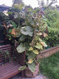 I was very pleased when I managed to get my “hundredweight” pumpkins and my “crown prince” squashes to climb up trellises. But in all honesty, given that they took up most of two raised beds, and that I only got three fruits from nine vines overall, I’m not sure they gave me much bang for my space buck. Vertical gardening is great for small spaces and small gardens but I don’t think that squashes and pumpkins are the best choice for really tiny patios. I also had to prune them on a fortnightly basis to stop their triffid-like growth strangling everything else in the garden. All in all, I’ll definitely have a pumpkin patch at the new house, but I don’t think that I’d grow pumpkins or squash vertically again.